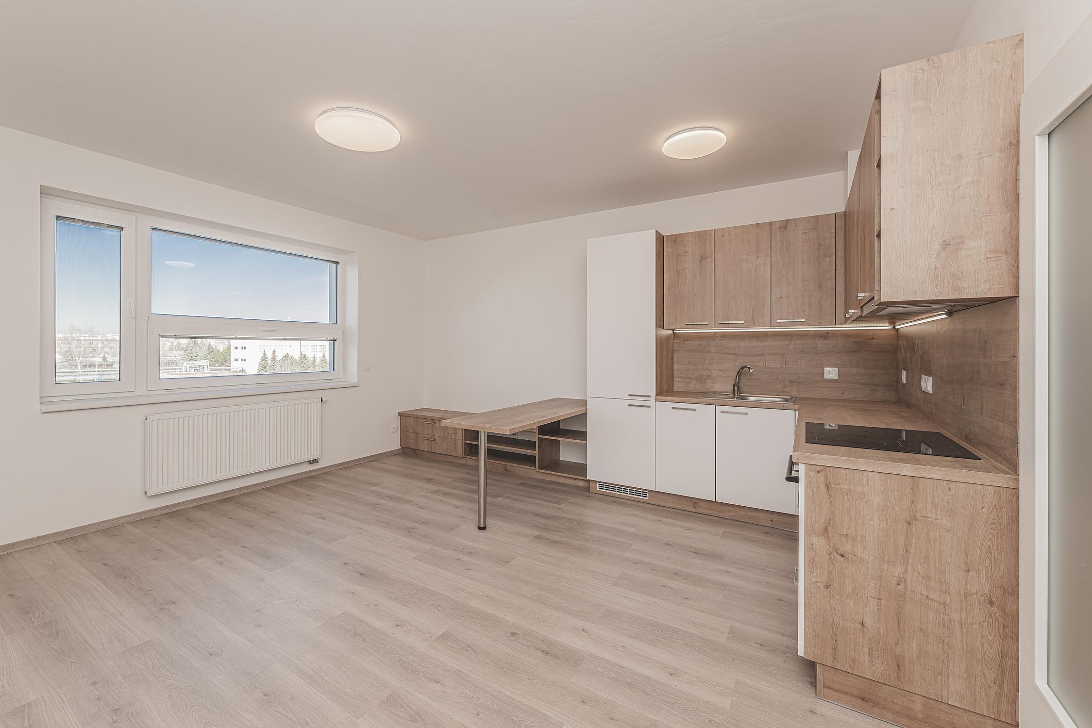 Zprostředkujeme vám pronájem světlého bytu 1+kk v ulici Antonína Petrofa, Hradec Králové. Jedná se o bytovou jednotku o podlahové ploše 32,90 m2 ve 4. nadzemním podlaží cihlového domu s výtahem vystavěném v roce 2022. Interiér tvoří obytná místnost s kuchyňským koutem, koupelna s toaletou, komora v bytě a chodba. K bytu náleží také sklep na patře a venkovní parkovací stání. Kuchyňská linka na míru disponuje vestavěnými spotřebiči. V obytné místnosti je umístěn praktický vestavěný nábytek. Stínění oken je zajištěno externími žaluziemi. Vybavení bytové jednotky je nabízeno k užívání tak, jak jej vidíte na fotografiích. Nemovitost se nachází v oblíbené a poklidné městské části Nový Hradec Králové. V okolí je výborná občanská vybavenost a dopravní dostupnost. V blízkosti se nachází obchodní centrum Futurum, mateřská a základní škola, sportovní středisko, cyklostezky, ale také báječná místa k relaxaci v přírodě, například přírodní památka Na Plachtě. Majitelé požadují vratnou kauci ve výši dvou plných měsíčních nájmů. Cena nájemného je uvedena bez měsíčních nákladů na služby a energie, které činní cca 2.500 Kč. Dále je požadována jednorázová odměna realitní kanceláři ve výše jednoho měsíčního nájmu + 21 % DPH. Bytem vás rádi osobně provedeme.